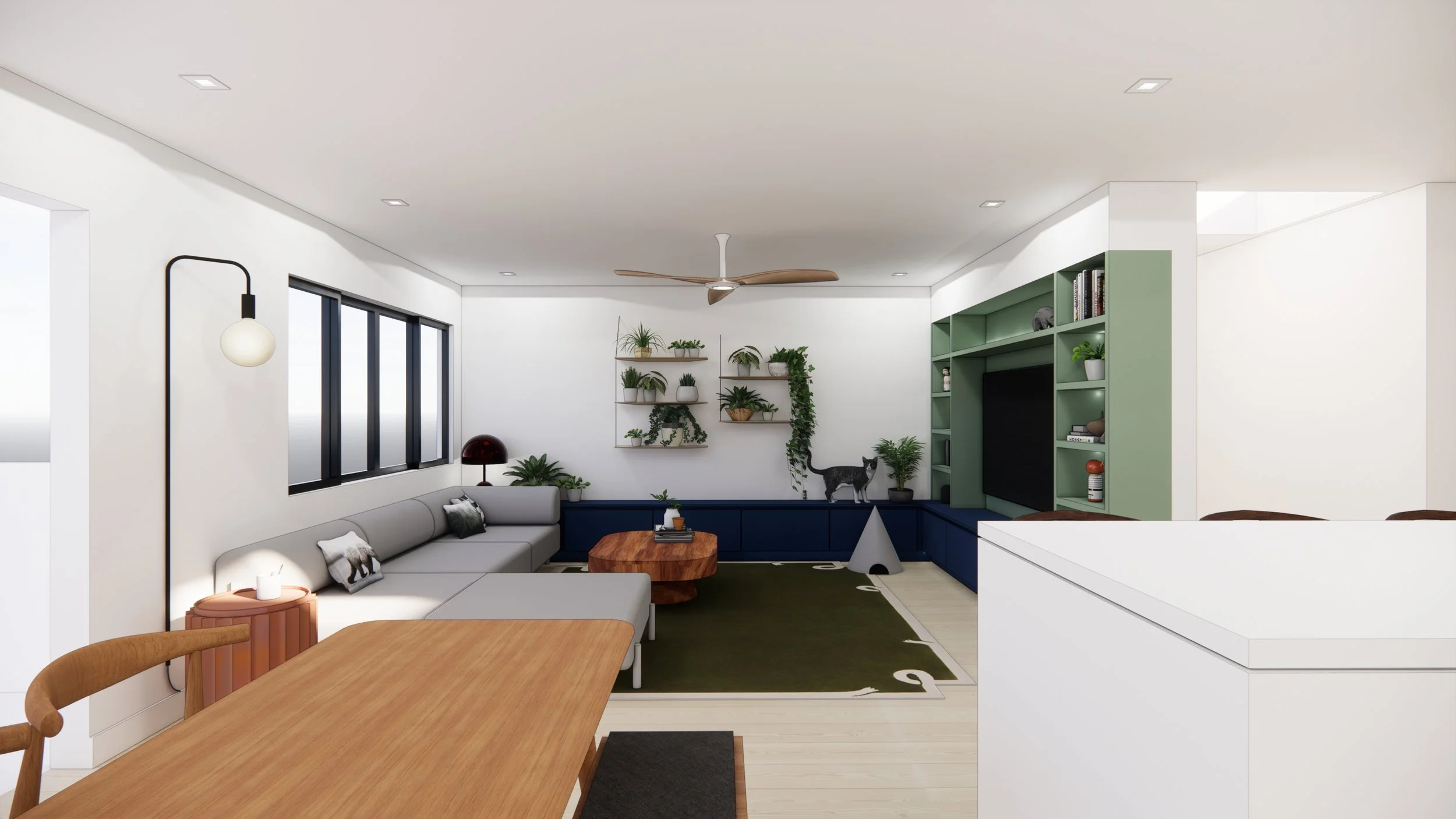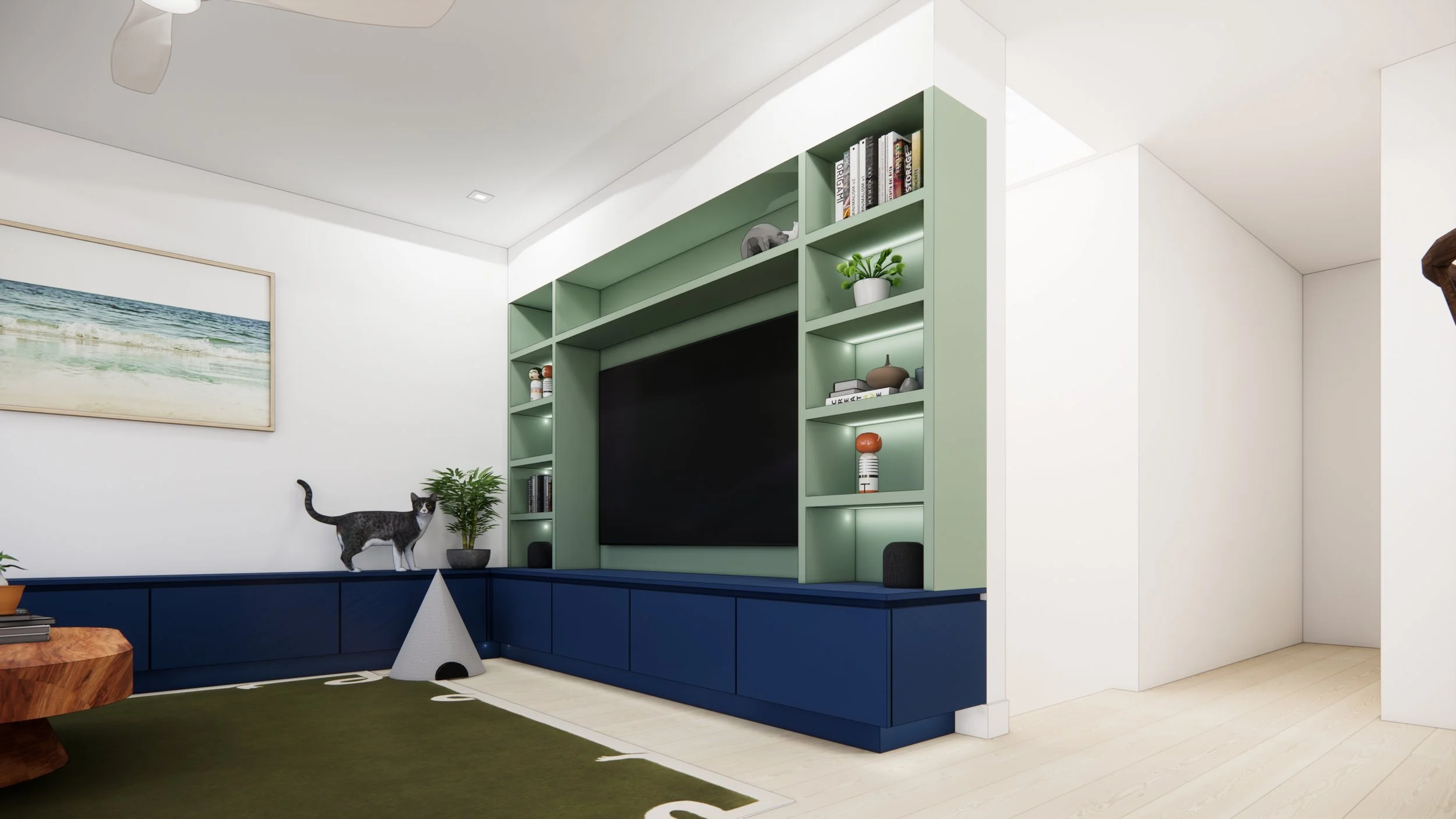 Custom built-in cabinets designed for a young family to grow into—offering smart storage and a living display for their love of plants. A space that evolves with them, bringing nature and home closer together.